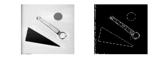 The foregoing techniques of estimating gradients work best when the gray level transition is quite abrupt, such as for the tool image above. For smoother transitions, like in the case of the Lenna image, it is more advantageous to also compute the second-order derivative and to see when this second derivative crosses zero. If the second derivative crosses zero, it means that the location does indeed correspond to a maximum and we conclude therefore that this pixel location is an edge location. This technique is called the zero-crossing edge location technique. A common mask operator for the estimation of the second derivative is the Laplacian operator, defined as