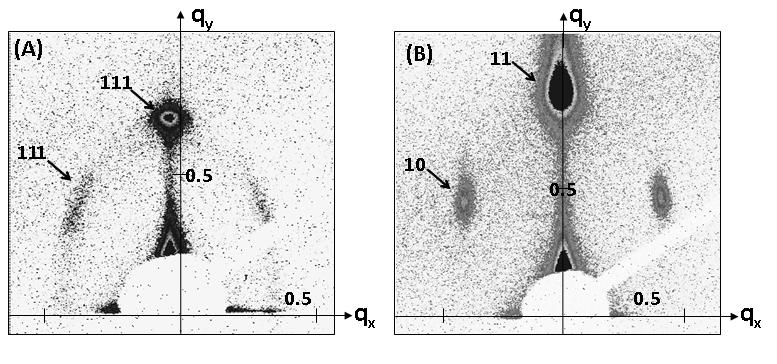 2D-Small Angle X-Ray Scattering (SAXS) patterns of (A) a P123 cubic and (B) a P123 hexagonal mesoporous silica thin films. |