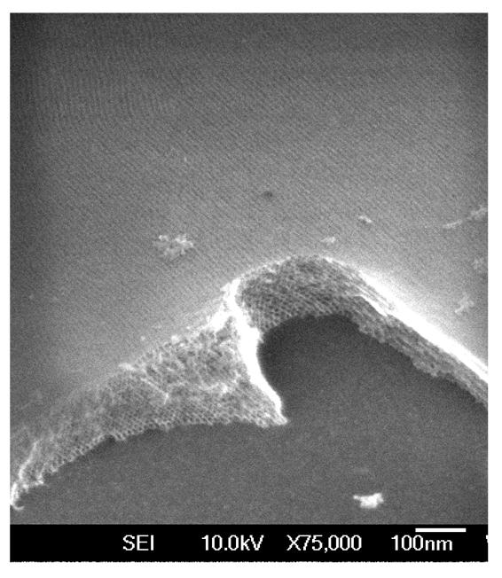 SEM of hexagonal mesoporous silica thin films |