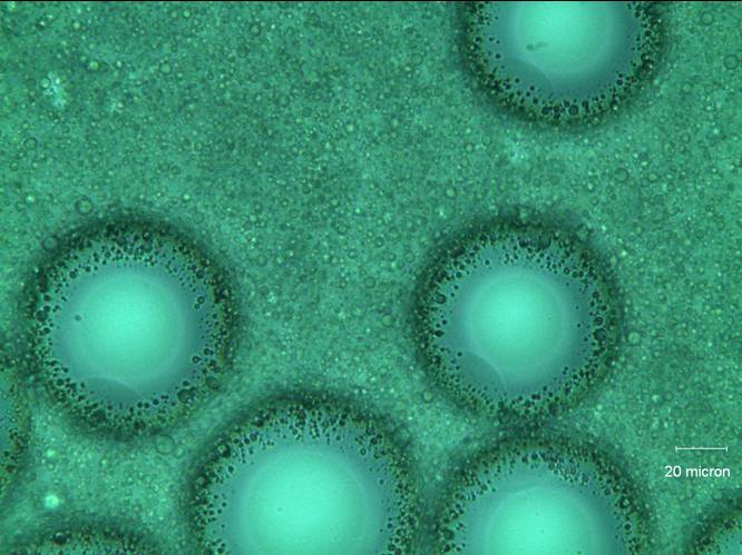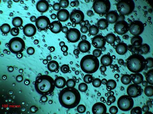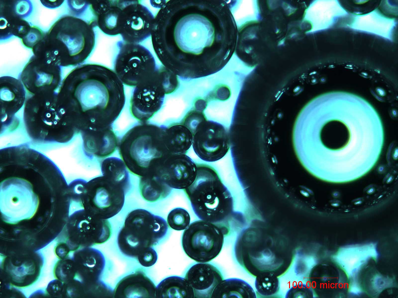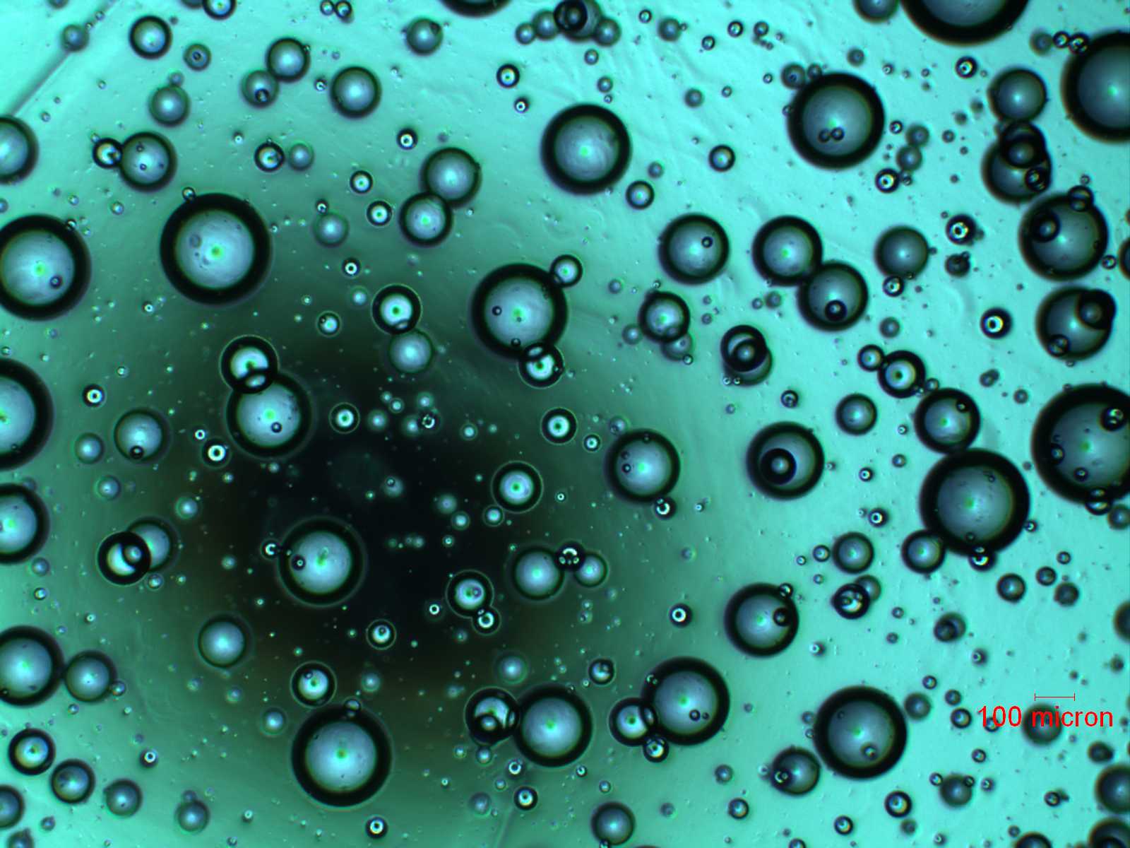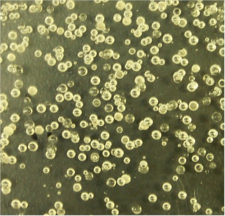 | Bubble entrapped in glass (bubbles have an average diameter of 1 mm) |