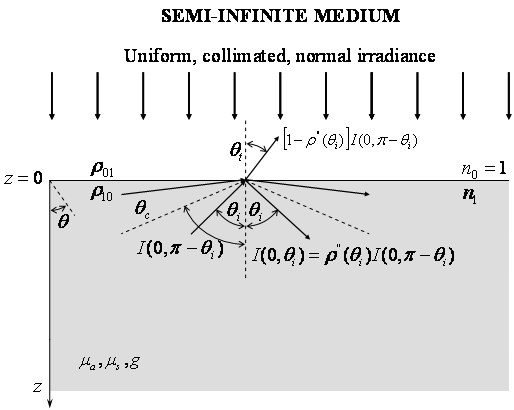 where the reflectivity at the medium/air interface accounting for the fact that intensity inside the medium