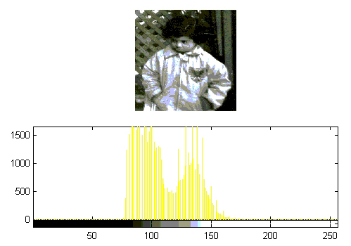 gray levels, from 0 up to 255, and the vertical lines in the histogram