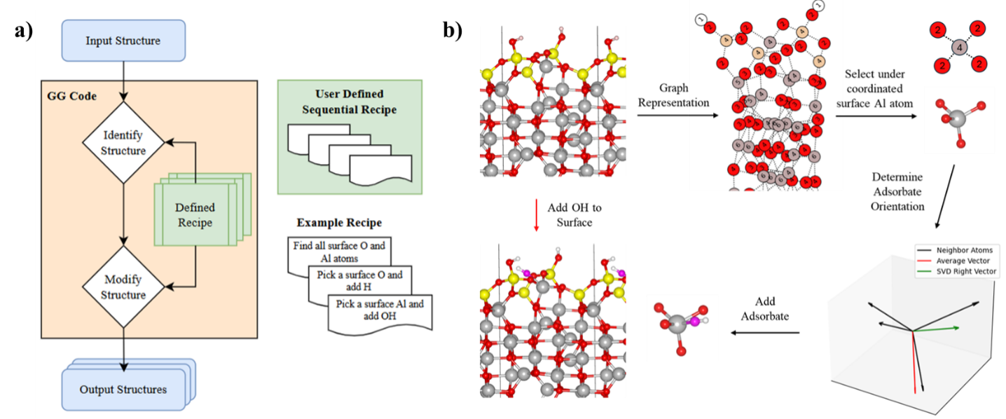 To address these challenges, we propose a graph-based framework that standardizes structural transitions (GitHub). Building on established graph representation tools, our approach extends to a wider range of catalytic systems. By integrating these tools with a grand canonical basin hopping GO algorithm, users can efficiently identify thermodynamically stable configurations under experimental conditions (e.g., temperature, pressure). The graph-based representation enhances search efficiency and provides a more accurate depiction of vibrational energies. This framework mitigates biases in conventional GO methods while remaining flexible for system-specific customization.