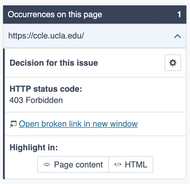 - Dismiss: Some URLs (like ccle.ucla.edu) can be accessible only via VPN. If that's the case, click the gear icon, select "Dismiss forever," and click "Apply decision"